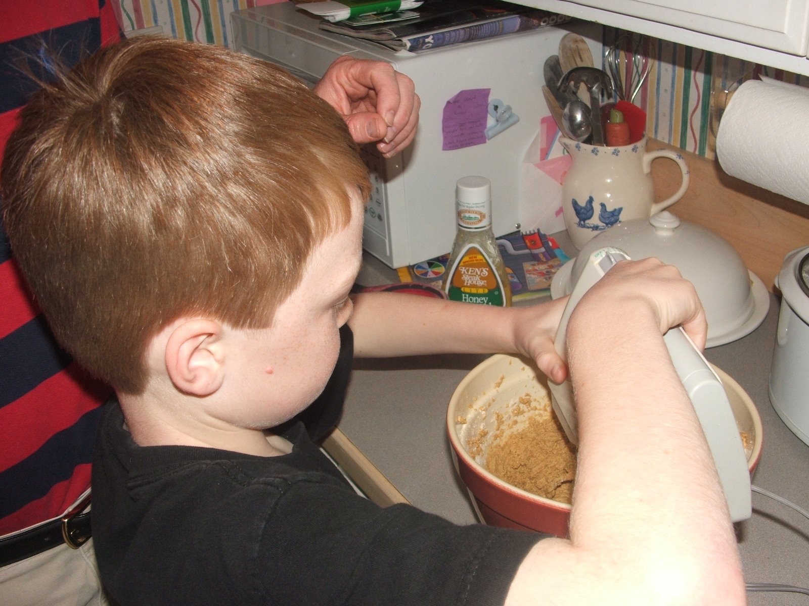 This is Sam making me a surprise. They would have been gingerbread cookies, but Sam doesn’t like ginger. So, instead they were more spice cookie or molasses cookie. It was a boy project. Sam, Mark and Wilson made the cookies, rolled the dough and cut them out. We even had some left over dough so that we can make a few more this weekend. And, they made them wheat-free so that Sam could eat them as well. Sophie and I didn’t have to do any work. We just got to taste the fruits of their efforts. They were delicious!